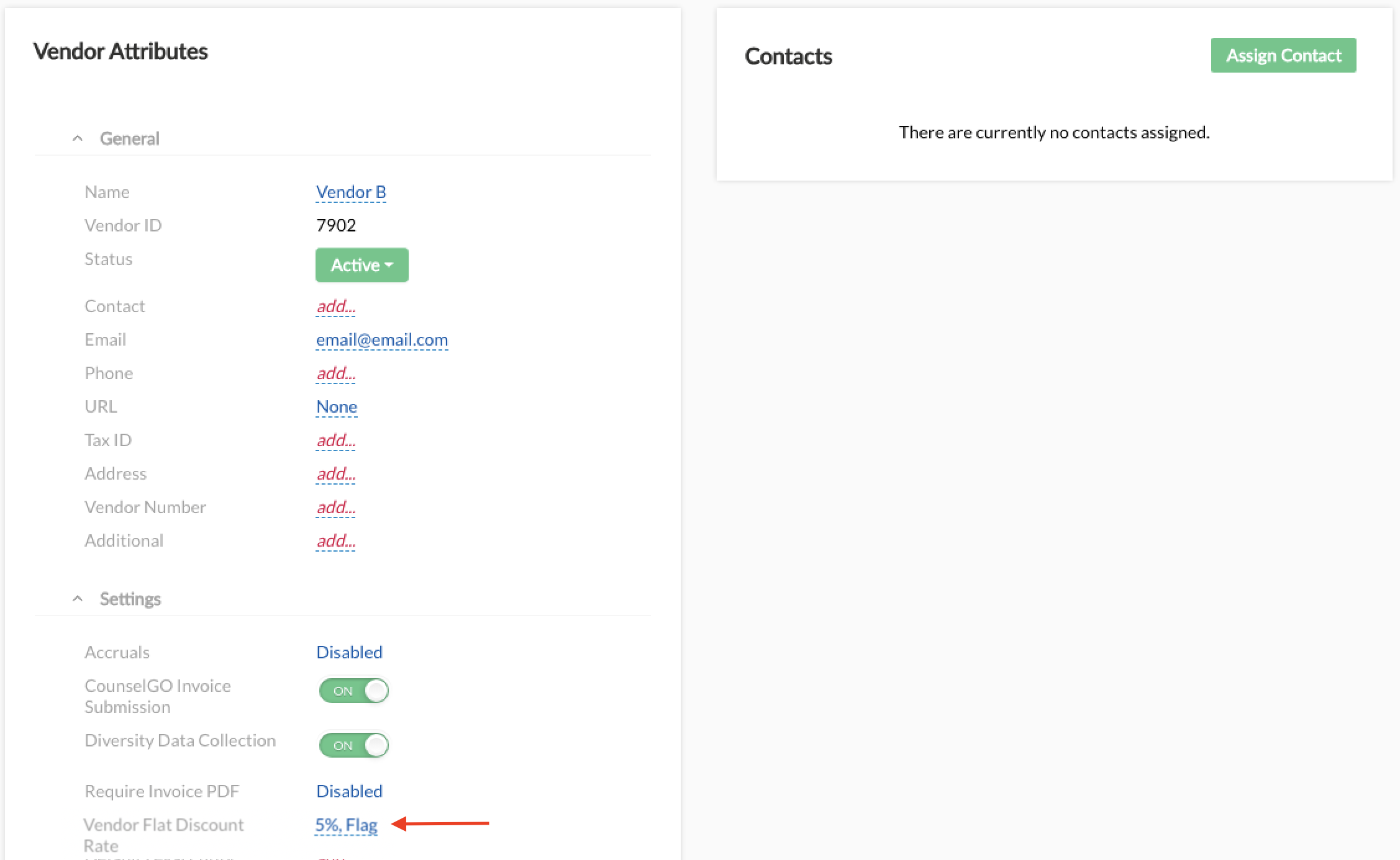 Configuration Step 2: Assign a discount rate to applicable vendors.